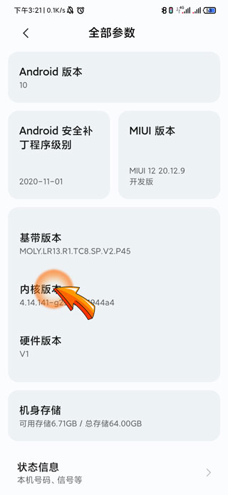 4、此时页面中部会出现“内核版本”选项,连续敲击5次以上。