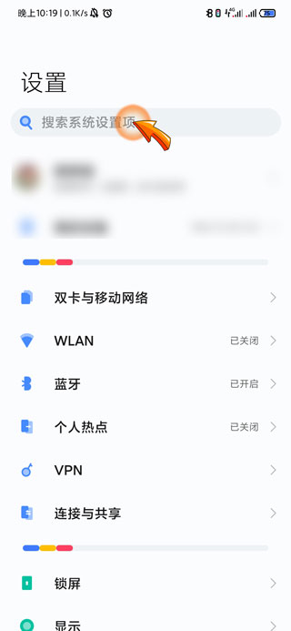 2、然后点击设置页面顶部的“搜索栏”图标,进行搜索。