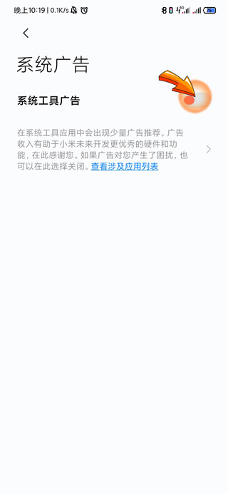 4、最后将“系统工具广告”右侧的开关关闭,广告服务就关闭成功了。
