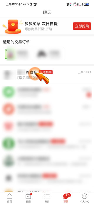 1、拼多多投诉商家首先需要打开拼多多APP,点击首页下方的“聊天”图标。