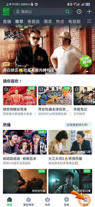 1、爱奇艺会员卡密兑换首先需要打开爱奇艺APP,点击首页右下角“我的”图标。