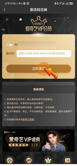 5、输入需要兑换的激活码,最后点击下方的“立即激活”选项即可。
