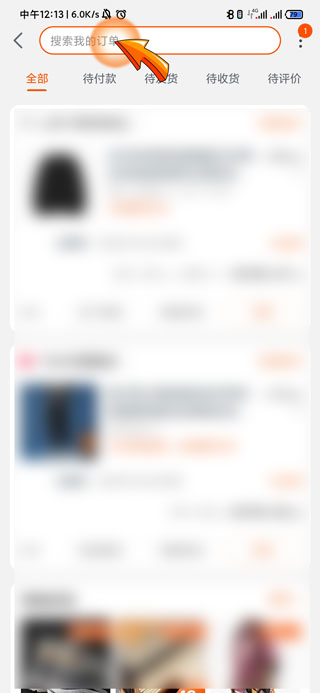 3、然后出现的页面就是淘宝的购买记录,同时也可以点击上方的“搜索栏”,输入关键词进行搜索。