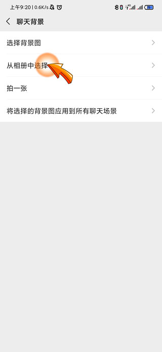 4、进入聊天设置中后,选择并点击“聊天背景”选项。
