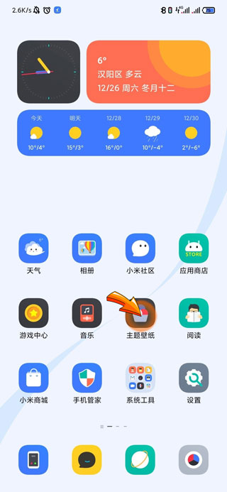 1、小米手机桌面字体改黑色首先需要打开系统自带的“主题壁纸”APP。