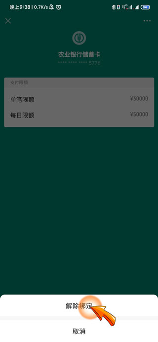 微信取消绑定银行卡需要打开微信APP,点击右下角“我”的图标,然后点击“支付”选项,找到并点击“钱包”图标,在点击“银行卡”选项,选择需要解绑的“银行卡”图标,点击右上角的“三点”符号,弹出页面后点击“解除绑定”即可。