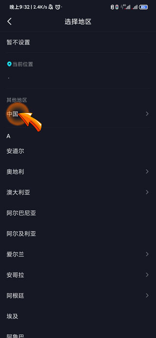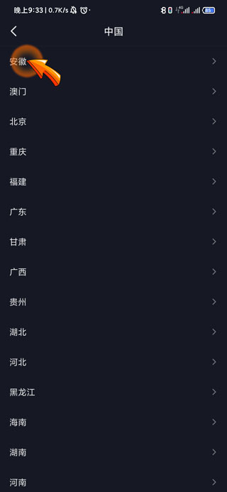 5、最后根据系统步骤点击省、市级“地区”名称,抖音默认位置就修改完成了。