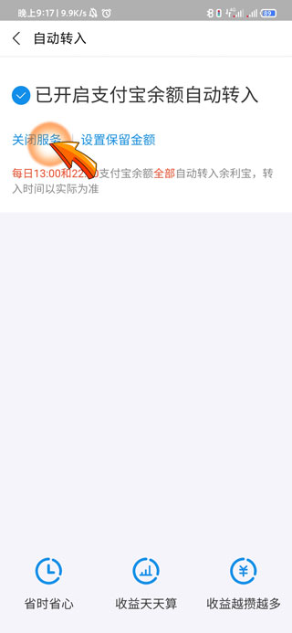 余利宝关闭自动转入的步骤