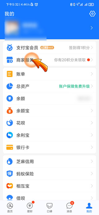 2、然后在页面的上方会有“商家服务”选项,点击进入。