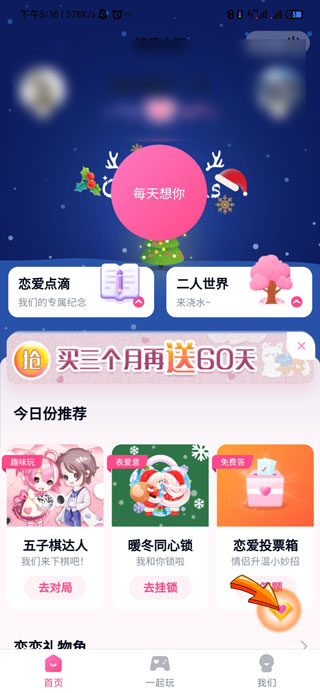 2、然后找到并点击“我的情侣空间”选项,进入情侣空间。