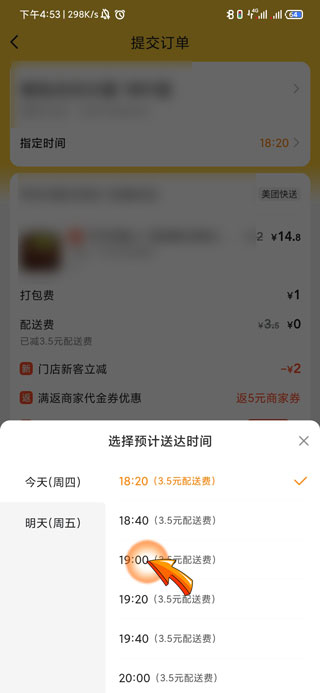 5、之后在页面中选择并点击自己所需要送达的时间。