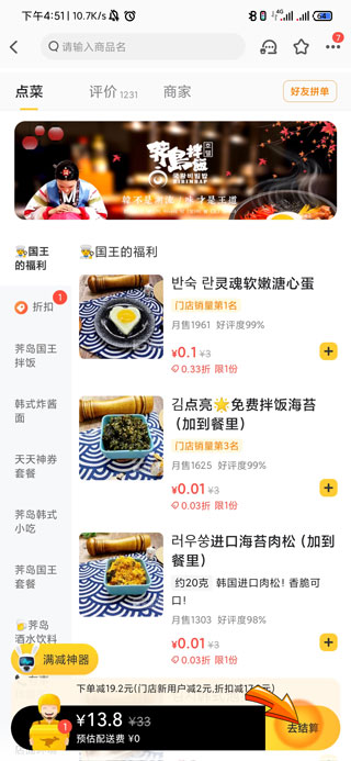 3、在店铺页面中选择自己需要购买的商品,然后点击右下角的“去结算”。