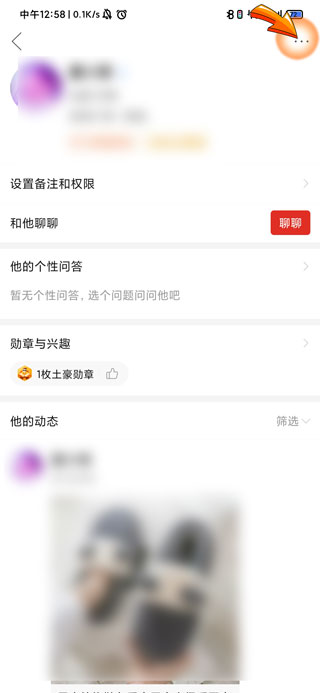 3、再点击好友主页右上角的“三点”图标,下方则会弹出页面框。