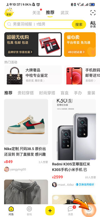 1、首先下载并打开闲鱼app,进入主页后点击右下角“我的”选项。