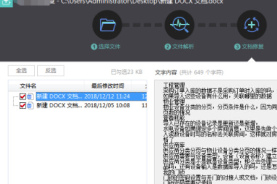 3、文件解析完成后,打开文档修复界面并选择修复版本,之后点击“确认”按钮,wps文档就会自动进入修复程序,修复完成后会被保存到指定位置。
