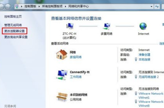 在弹出的网络窗口中,点击“打开网络和共享中心”,然后点击左边的“更改适配器设置”。