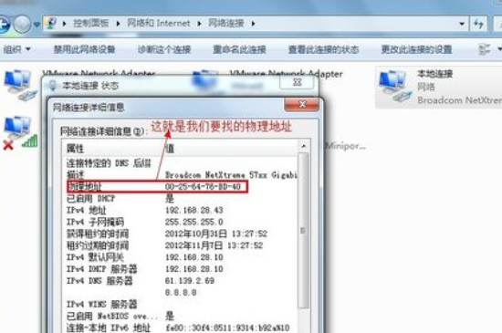 最后,在详细信息的属性中,就可以找到网卡的物理mac地址了。
