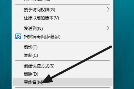 2、在新弹出的列表中找到“重命名”选项并鼠标左键单击,之后就可以在新界面的输入框内输入新的名字,输入完成后按回车键即可。
