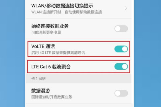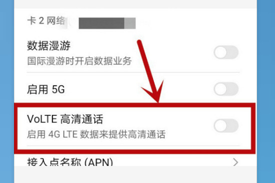 3、点击Volte高清通话的按钮,高清通话开启后会有颜色标识。