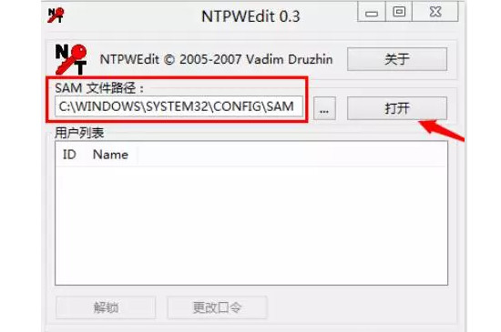 文件路径一般使用默认,点击打开。选择设置密码的账户,点击更改口令。完成后保存更改,拔出u盘,重启电脑。