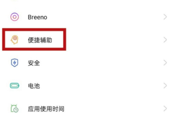 2、进入OPPO手机的设置界面后,下滑界面找到“便捷辅助”选项并点击打开,之后点击便捷辅助界面中的“导航键”。