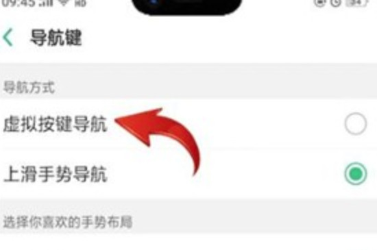 2、进入导航键设置界面后,打开“虚拟导航键”,这时屏幕下方就会出现三个虚拟导航键,其中最右侧的就是返回键,点击后可以返回上一级。
