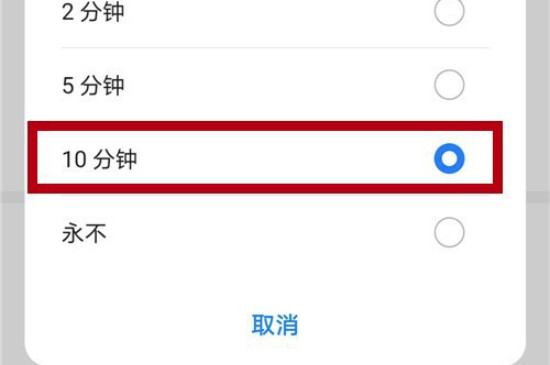 3、点击休眠选项后可以看到休眠时间有“15秒、30秒、1分钟、2分钟、5分钟、10分钟、永不”七个选项。之后按照个人需求选择一个即可。