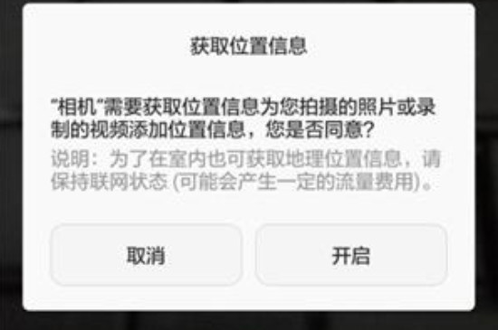 3、点击水印选项弹出提示信息后选择“开启”,开启这个功能之后手机就会自动识别拍照时的时间、地点和天气等信息,且这些信息会出现在拍摄的照片上。