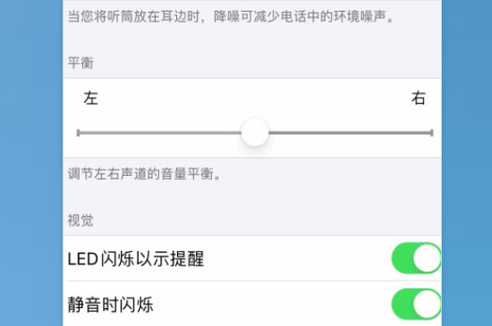 4、找到LED闪烁以示提醒选项,打开开关即可,还可以将静音时闪烁的开关打开。