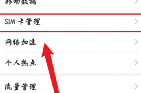 2、在设置中找到移动网络的选项,点击SIM卡管理选项。