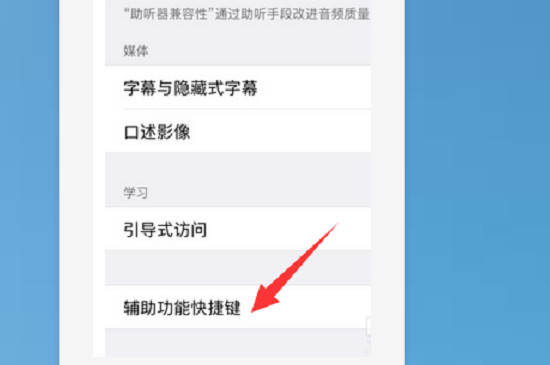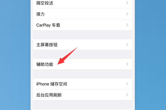 3、页面下滑,可以看到辅助功能快捷键的选项,进入可给苹果8p手机设置小圆点。