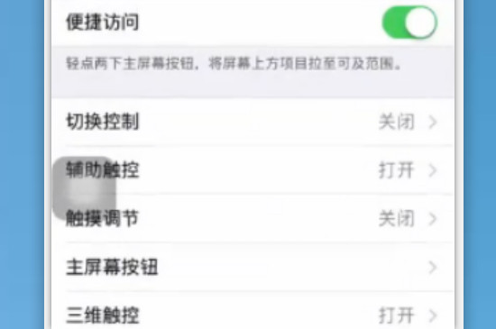 3、向下滑,找到辅助触控,点击开启辅助触控,屏幕上的小白点可以用来代替home键。