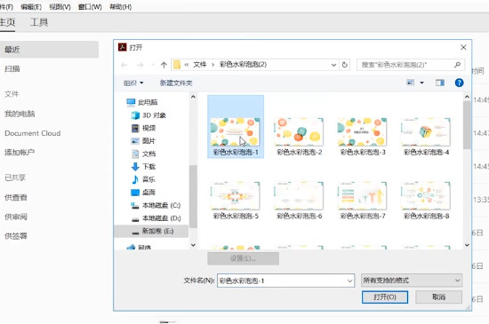 创建空白页面的文档后,会弹出一个打开文件的对话框,在对话框中选择自己想要上传的素材,然后点击打开,可以按照个人想法编辑内容,编辑完成即可。