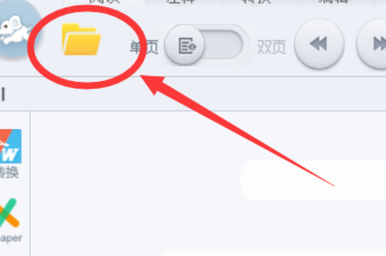 1、打开电脑上的已经安装好的pdf程序,在pdf页面上点击左上角的文件夹。