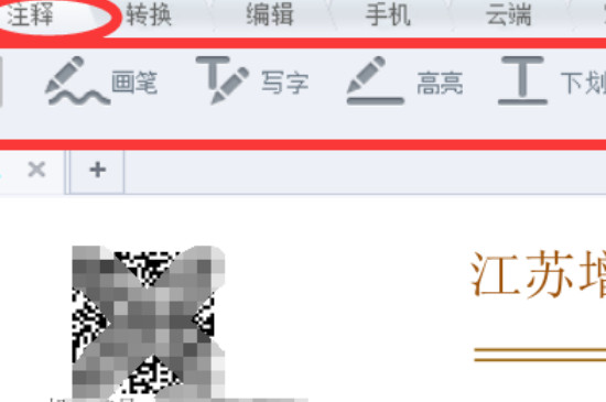 3、文件在pdf程序中打开后,可以点击工具栏中的注释,即可选择需要注释的工具。
