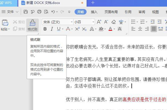 格式刷是word软件中的一种工具,它可以将指定段落或文本的格式快速延用到其它段落或文本上,减少重复设置格式的麻烦。