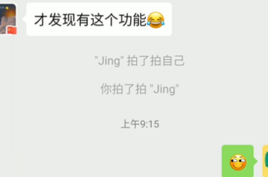 双击自己的头像也会显示你拍了拍自己的提示。在群聊中,通过微信上线的拍一拍“功能”,可以让用户能在对话框看到文字提醒,包括被拍对象在内的其他人。