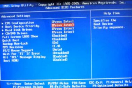 将u盘启动器插入电脑主机后按开机键,进入开机界面后长按DEL键进入BIOS主菜单界面。之后通过键盘上的方向键选择Advanced BIOS Features选项并按回车键,之后按照提示进行操作即可。