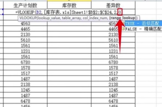 匹配vlookup两个表,先对比两个表的数据,在库存第一列中输入公式vlookup,第一个参数为B2,到库存表中选取vlookup函数查找的区间范围,输入第三个参数值2,最后一个数值为0,把设置好的公式复制到其他单元格中数据就会自动生成。