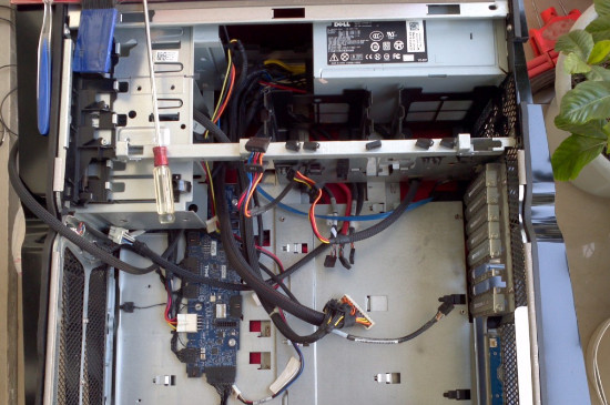机箱内如果有很多灰尘堆积,会影响机箱内硬件的运转,导致接触不良。可以将机箱里的内存条、显卡等取下将灰尘用纸巾擦干净,然后给CPU涂上导热硅胶,将硬盘上的连接线也清理一下重新插上去。