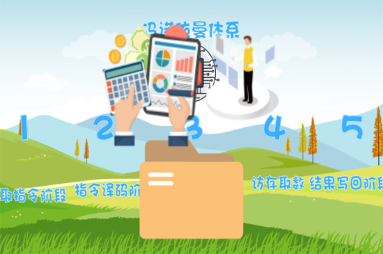 根据冯诺依曼体系,cpu的工作分为5个阶段分别是:取指令阶段、指令译码阶段、执行指令阶段、访存取数和结果写回阶段。程序和数据统一储存,指令和数据需要从同一储存空间存取,经由同一总线传输,指令执行完毕,计算机将开始下一条指令的循环。