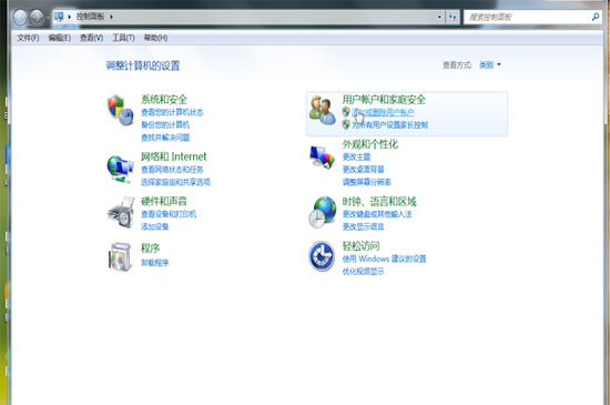 2、进入控制面板的页面之后,找到并点击“用户账号和家庭安全选项”。