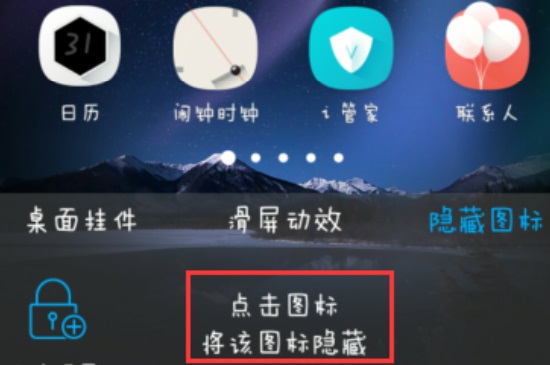 首先打开vivo手机,点击手机下方菜单栏或桌面任意位置长按。进入桌面编辑模式,可选择隐藏图标,点击后可将要隐藏的应用拖到隐藏的框中,然后返回桌面就看不到刚刚隐藏的应用图标了。