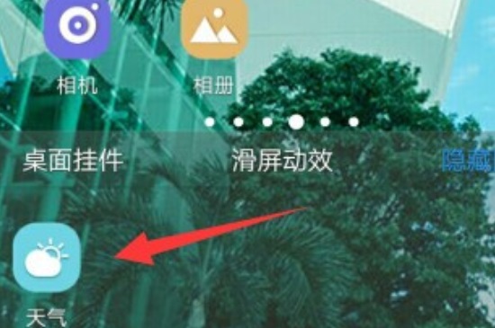 进入桌面编辑模式后,会出现一个任务栏,可选择桌面挂件,滑屏效果和隐藏图标。