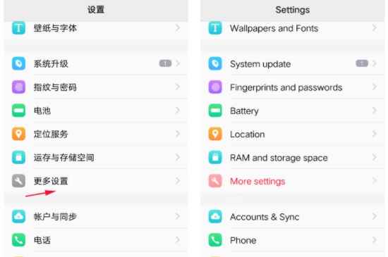 打开手机设置,下滑找到更多设置选项。