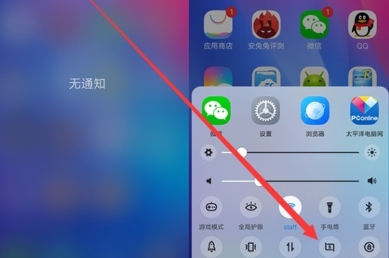 返回桌面,从屏幕底部向上滑,开启底部快捷菜单,找到超级截屏。