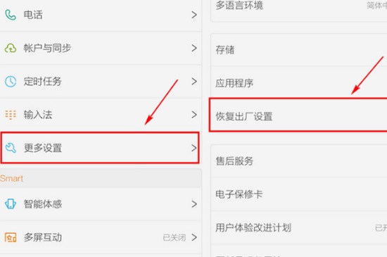打开vivoy3手机之后点击设置选项,进入设置并下拉页面找到更多设置,点开之后找到恢复出厂设置选项,此时系统会显示两种选项。如果需要还原手机一切设置,就点击还原所有设置,如果要清除手机数据就点击清除所有数据。