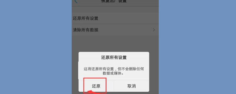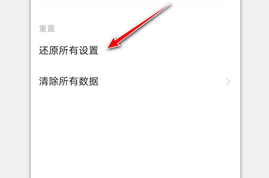此时系统会显示两种选项。可选择还原所有设置和清除所有数据。如果需要还原手机一切设置,就点击还原所有设置,如果要清除手机数据就点击清除所有数据。然后等待手机自己操作即可。