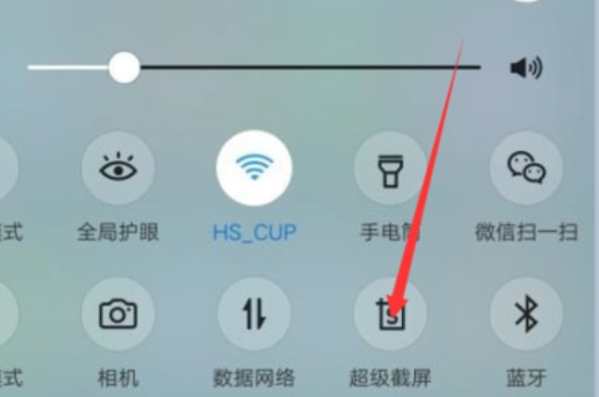从屏幕顶部向上滑,打开快捷菜单栏,点击超级截屏后选择需要的截屏方式后就可以截屏了。
