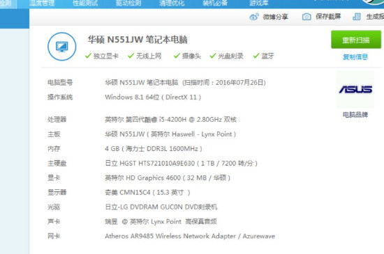 3、如果投影仪依然无法正常显示画面,建议在电脑上下载并安装鲁大师软件,再打开鲁大师对显卡进行检测,若显卡有异常,需要重新安装显卡再连接投影仪。